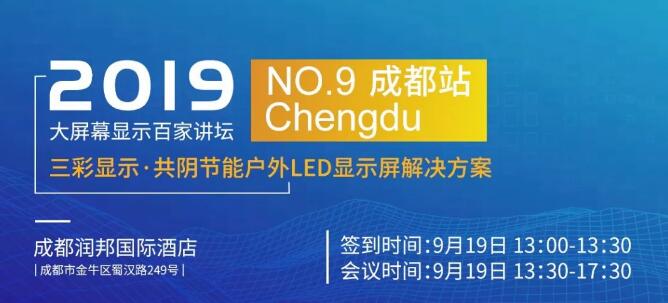 9月19日,由业绩榜主办的大屏幕显示“百家讲坛”第五季全国巡讲巡展免费培训活动第九站,将在成都润邦国际酒店开讲,三彩显示携共阴冷屏系列参加大屏幕显示百家讲坛,为四川及西南地区的朋友们带来*新的共阴节能户外LED显示屏解决方案。
