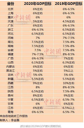多数省份下调2020年GDP增长目标