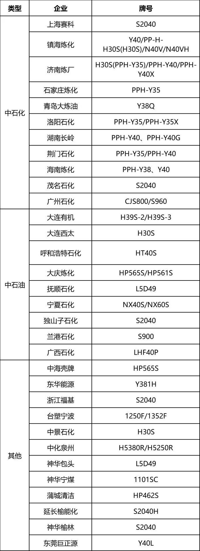 ▲图表7:高溶脂PP原料厂家名单表