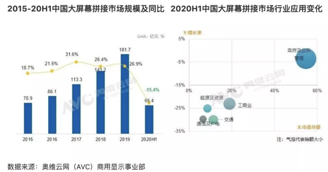政府刚性需求主导,20H1大屏幕拼接规模达到去年同期85%