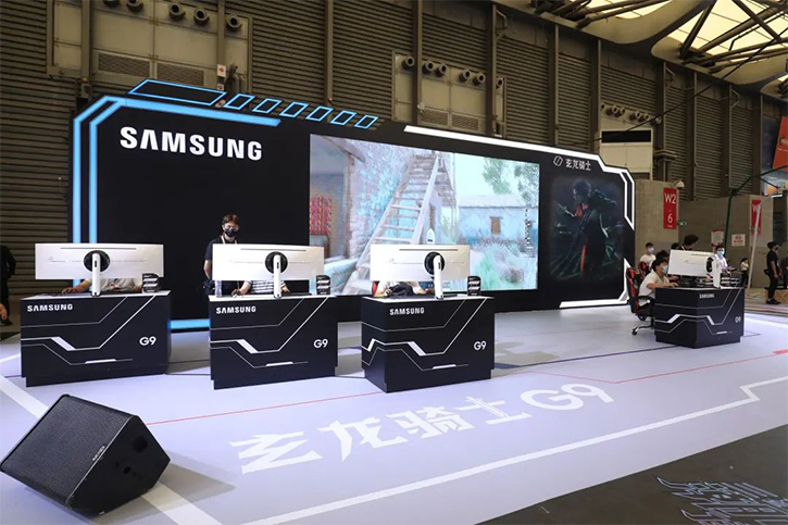 展会期间,在现场的“‘战’在一起”舞台区域,上演了多场激情澎湃的电子竞技对抗赛,为观众奉献了一幕幕精彩的演出。比赛中选手们使用的显示器也成为了现场的焦点之一,它正是三星近日发布的玄龙骑士电竞显示器系列的最 新旗舰产品——Neo G9。这款显示器搭载了2048个调光区的Mini LED背光板,峰值亮度可达到2000尼特,结合QLED量子点技术、1000R曲率、DQHD高分辨率,1ms急速响应时间及240hz高刷新率,无论是在画面的细腻程度还是游戏参数上都很优 秀,让玩家沉浸在游戏世界中。现场选手也在它的辅助下,发挥出了很高的水准。