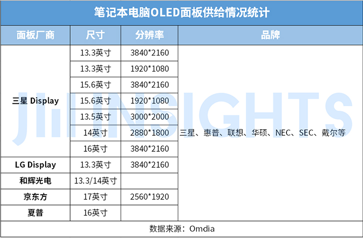鉴于OLED笔记本电脑市场的良好发展势头,三星显示器公司已经将笔记本电脑OLED面板出货量由原来的400万片调至500~600万片,提高约40%。但是目前只有三星Display在积极推动笔记本电脑OLED市场,市场占比较低。Omdia预计,今年笔记本电脑OLED出货在整个市场的占比仅2%-3%。