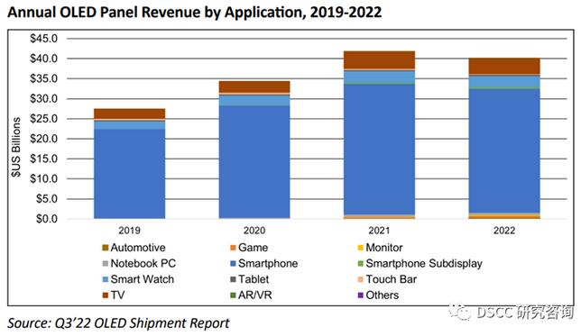DSCC:预期2022年OLED面板营收下降4%