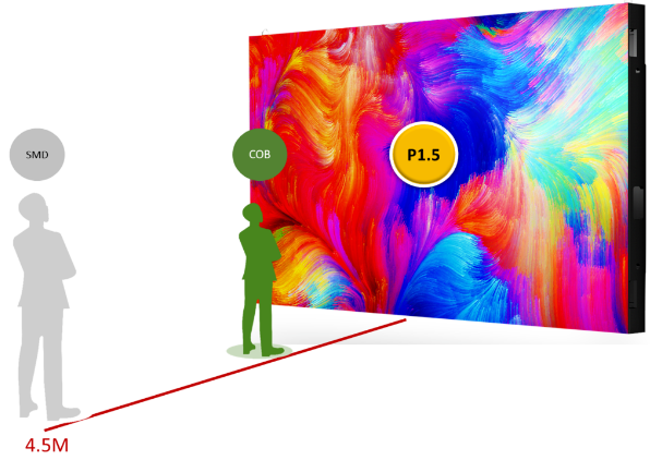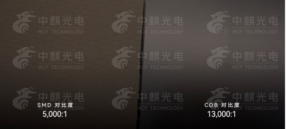 SMD封装的显示屏由于表面没有经过光学处理,在侧面观看时容易产生麻点、色偏等现象;而COB技术经过环氧树脂或硅胶封装,表面光滑平整,水平、垂直视角宽、色域广、面发光不刺眼,观感体验更完美。