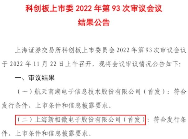 11月22日,据科创板上市委2022年第93次审议会议结果显示,上海新相微电子股份有限公司(简称:新相微)科创板IPO成功过会。