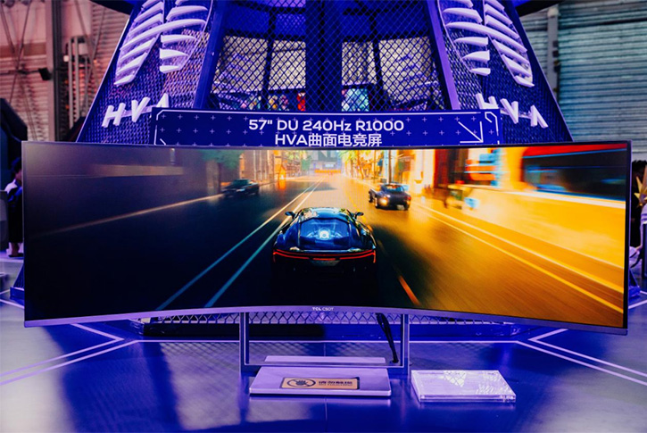 TCL华星每年都会推出一款全球首发旗舰电竞显示屏,而今年发布的全球首款57吋DU 240Hz R1000 HVA曲面电竞屏,搭载TCL华星高性能HVA面板,拥有240Hz高刷和DUHD7680*2160的高分辨率,曲率仅为R1000,并能实现1ms快速响应,57吋的超大尺寸也能够满足年轻玩家对游戏的极致体感。