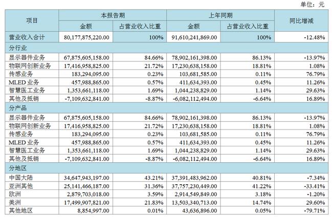 京东方半年报出炉:营收801.78亿,净利7.36亿