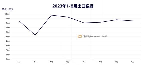 根据最 新海关数据统计,2023年1-8月LED显示屏出口额达约66.51亿元。