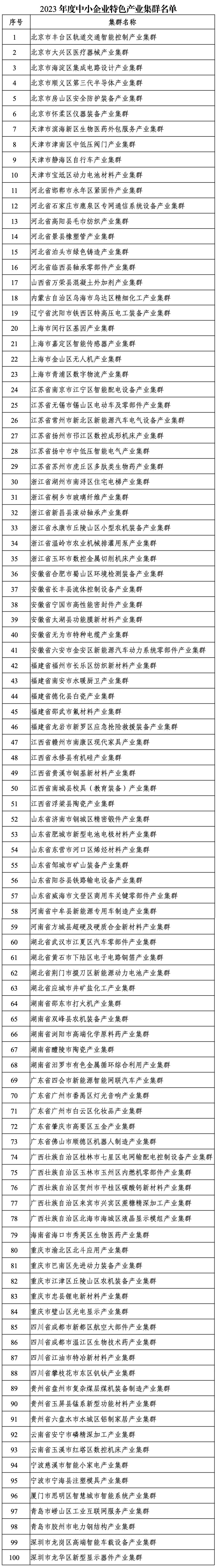 工信部公布2023年度中小企业特色产业集群名单,100个上榜!