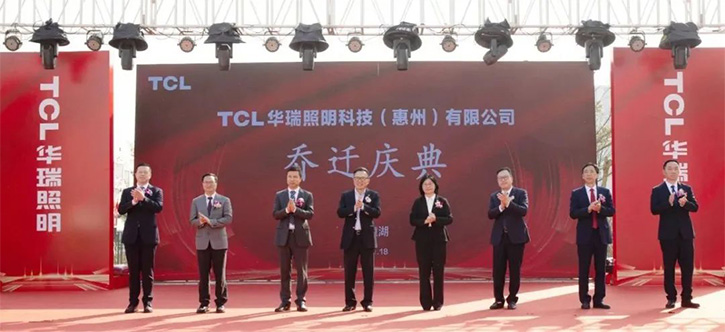 1月18日,TCL华瑞照明科技(惠州)有限公司乔迁庆典在中韩(惠州)产业园起步区举行,总投资约4亿元的LED智能光电项目正式投产,预计可实现年产值20亿元。