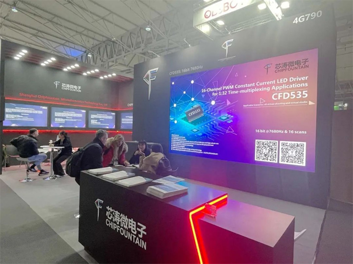 芯涛微电子携最 新驱动解决方案参展,如高端租赁、小间距解决方案——CFD555、xR虚拟拍摄解决方案——CFD535、经典租赁解决方案——CFD455、CFD325等。