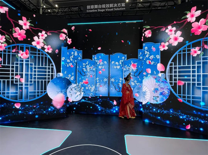 一场美轮美奂的舞台演出开始,迈锐光电无可置疑地成为众人瞩目的焦点。RP租赁系列产品出色的色彩一致性和对比度表现,结合不同的数字内容,为观展嘉宾呈现各式各样的沉浸式场景(国风、科技……),营造出媲美真实的空间感。