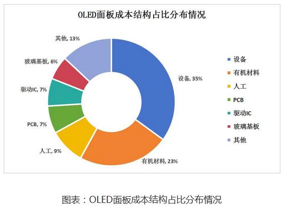 据中研普华产业研究院发布的《2024-2029年中国OLED行业深度调研及投资机会分析报告》分析,从成本结构的角度深入剖析,设备和有机材料无疑是OLED面板生产过程中的两大成本重心。其中,设备成本约占到整体投入的35%,显示出其在产业链中的重要地位。而有机材料则占据约23%的成本比例,同样不容忽视。