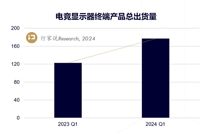 从今年一季度数据来看,电竞显示器市场明显向好,显示器面板供需趋紧,价格复苏,出货同比增长17%,电竞显示器终端产品总出货量增长近50%。