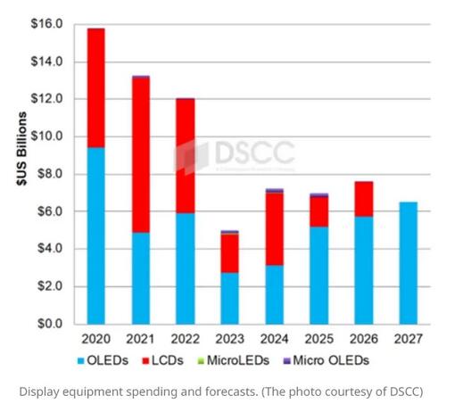 根据市场研究公司DSCC最近的一份报告,从2020年到2027年,显示设备投资预计将达到75亿美元。
