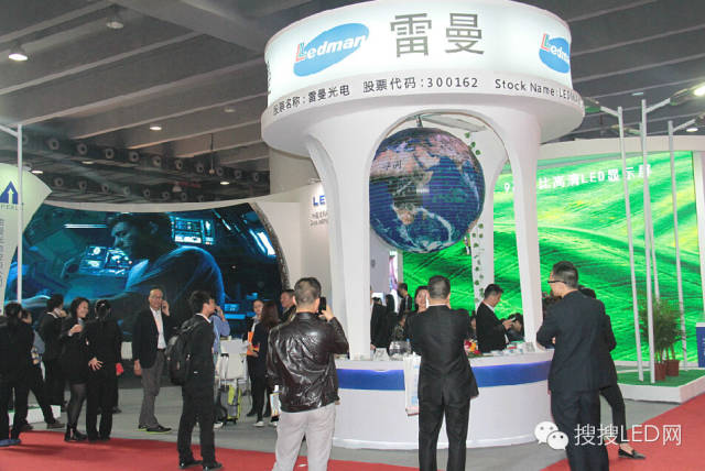 雷曼的展位上最醒目的一处标志就是前台上方的一个的球形屏,在球形屏上面,可以显示各种各样的景色,尤其是显示成地球的样子的时候,具有极强的画面感,雷曼本来与中超的合作已经是锦上添花,在收购康硕展之后,在异形屏领域又多了一大助力,可谓是如虎添翼。