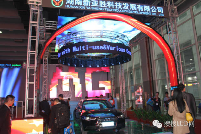 新亚胜集团展出了弧形屏,字母屏等产品,展会现场用作妆点的汽车起到了很好的烘托气氛的作用。