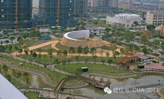 《环》于绿地公园之中,配置三角造型,内置圆融的环型主灯,暗喻现实与理想的结合将带来无限幸福。