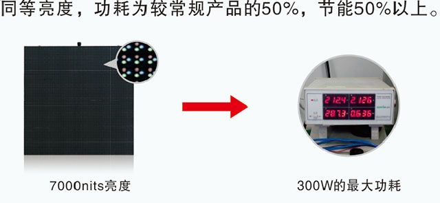1)节能环保——7000nits亮度/300W的最大功耗,节能效果较常规产品可达50%以上。
