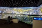 全围合视角营造沉浸观影体验,将地面的区域规划图与周围的三面幕墙打造出一个栩栩如生的影像空间。在沙盘上,可以清晰的看到绿化带、公路、河流、住宅小区等等,颜色、光影与实物模型的结合让眼前的一切更显真实。